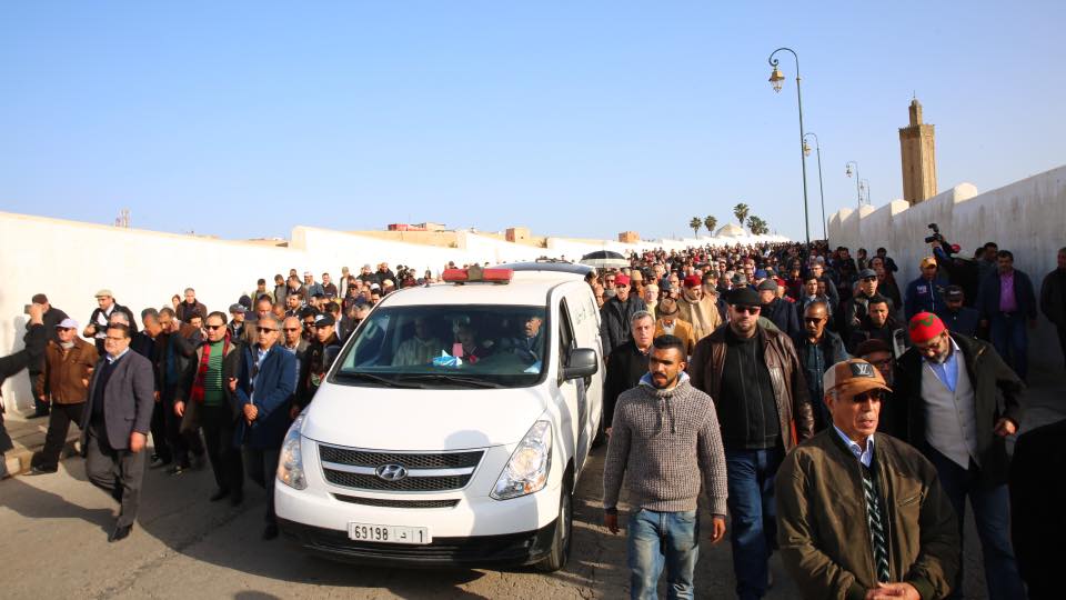 وبعد صلاتي العصر والجنازة بمسجد الشهداء، نقل جثمان الفقيد، الذي انتقل إلى عفو الله أمس السبت بمدينة مراكش عن عمر ناهز 79 عاما، إلى مثواه الأخير بمقبرة الشهداء حيث ووري الثرى.